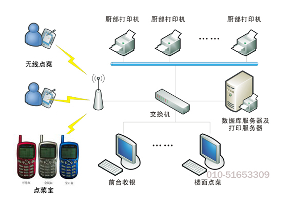 为点菜宝提供无线信号传输,距离300米以上,信号可以穿墙,三层楼用一个即可